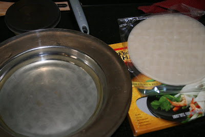 Dip each rice paper roll in some water - swirl it around for a minute or so until the roll begins to soften.