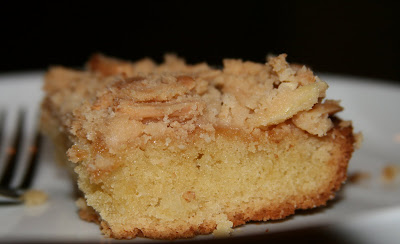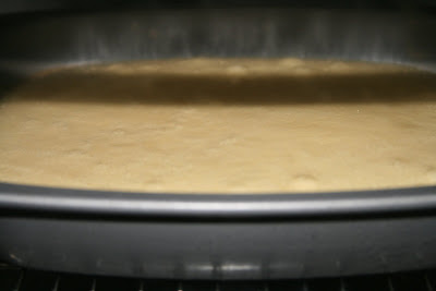 When the cake has baked for 20 minutes, take it out of the oven, and spread evenly with the topping. Pop back into the oven for about 15 minutes. If you can, put it on a higher rack in the oven, to get the browned effect.